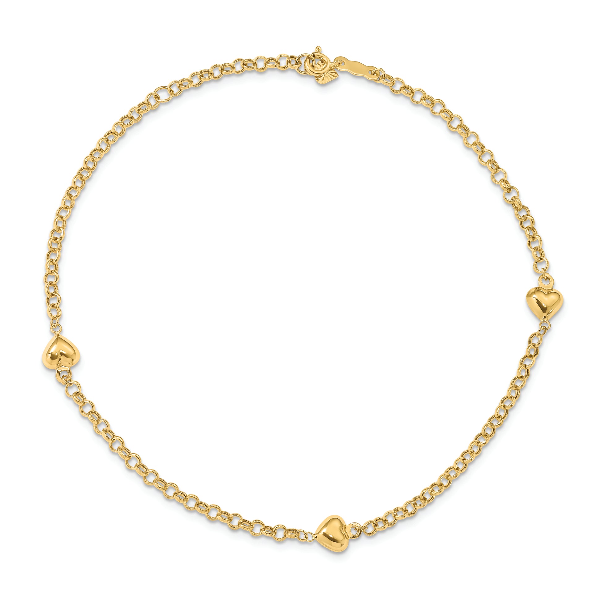 This charming anklet is crafted from lustrous 14k yellow gold and features a delicate chain adorned with a playful puff heart design, creating a feminine and radiant look perfect for summer or year-round wear. The 14k Puff Heart 10in Anklet adds a romantic shimmer and a sophisticated finish to any casual or elegant ensemble.
