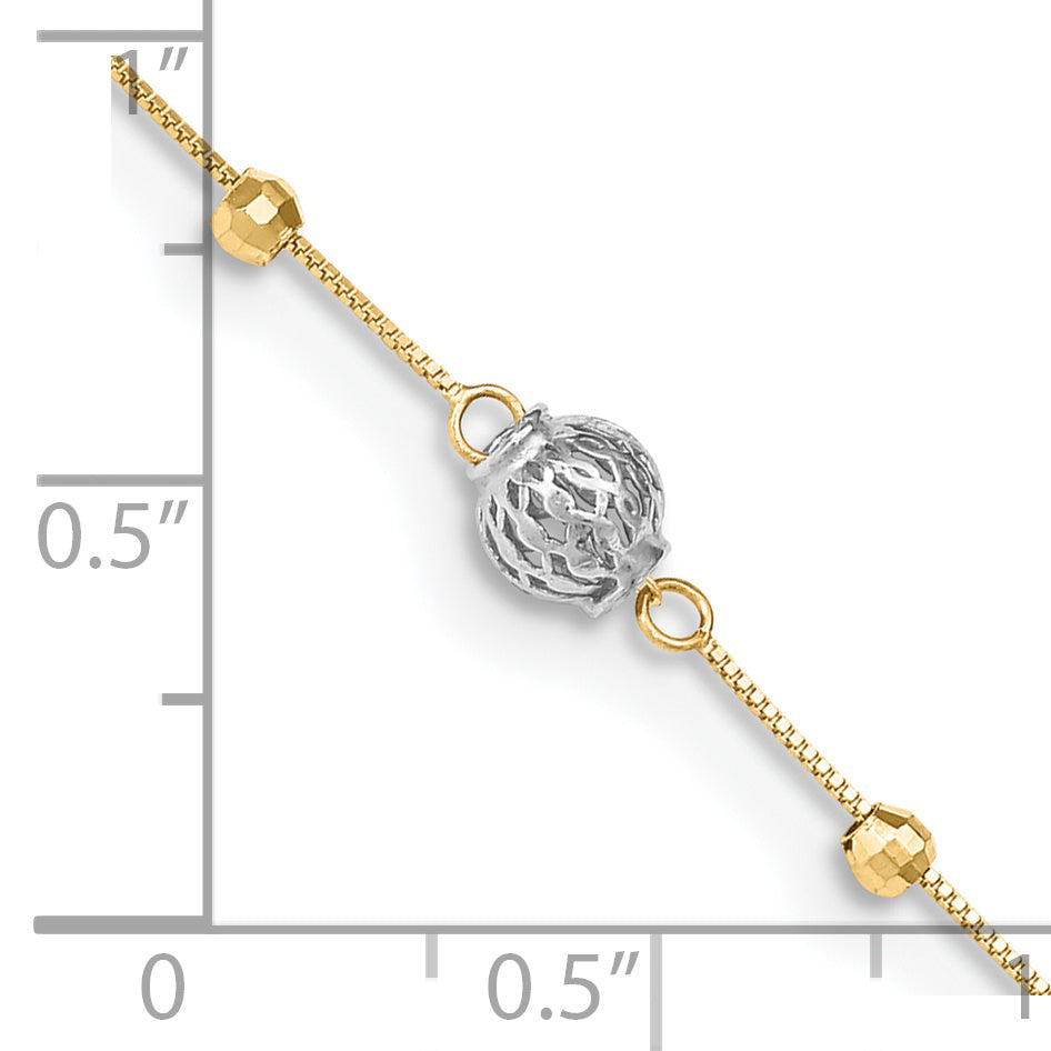 14K Two-Tone Beads 9In Plus 1In Ext. Anklet