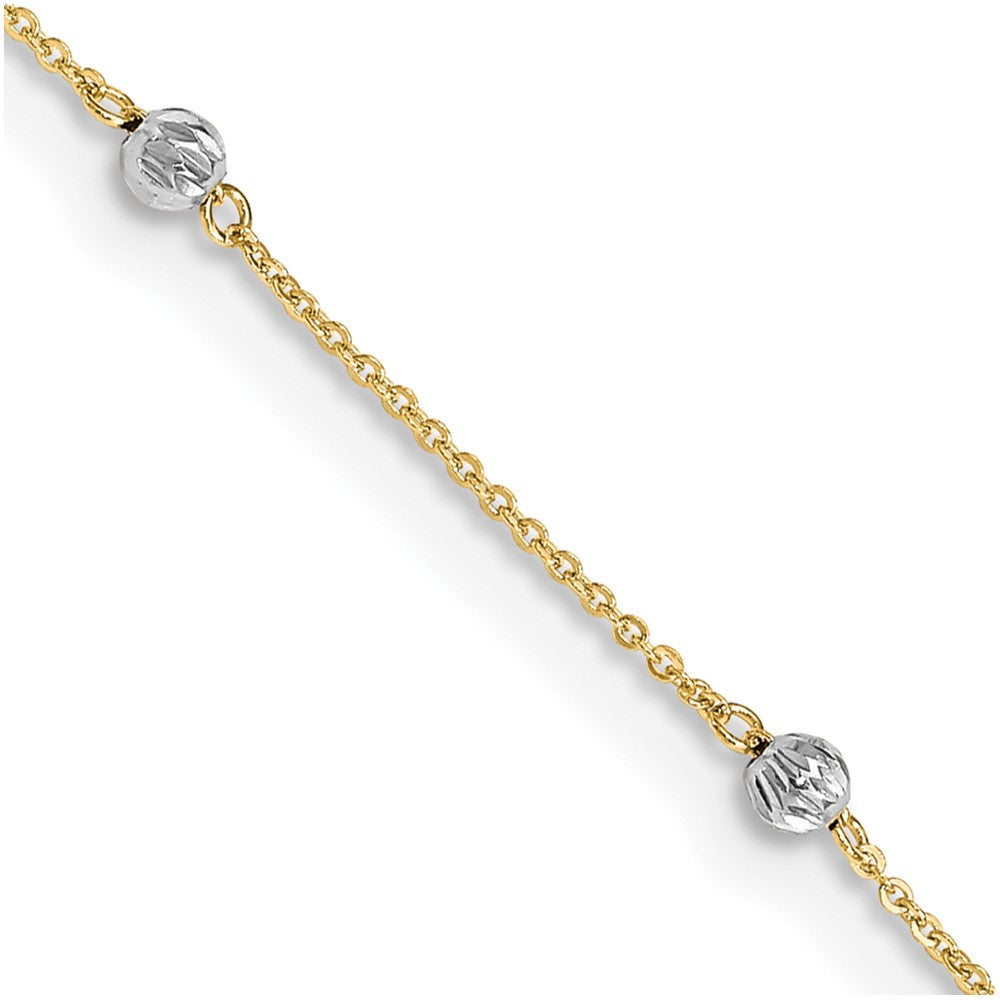 14K Two-Tone Diamond-Cut Beads 9In Plus 1In Ext. Anklet