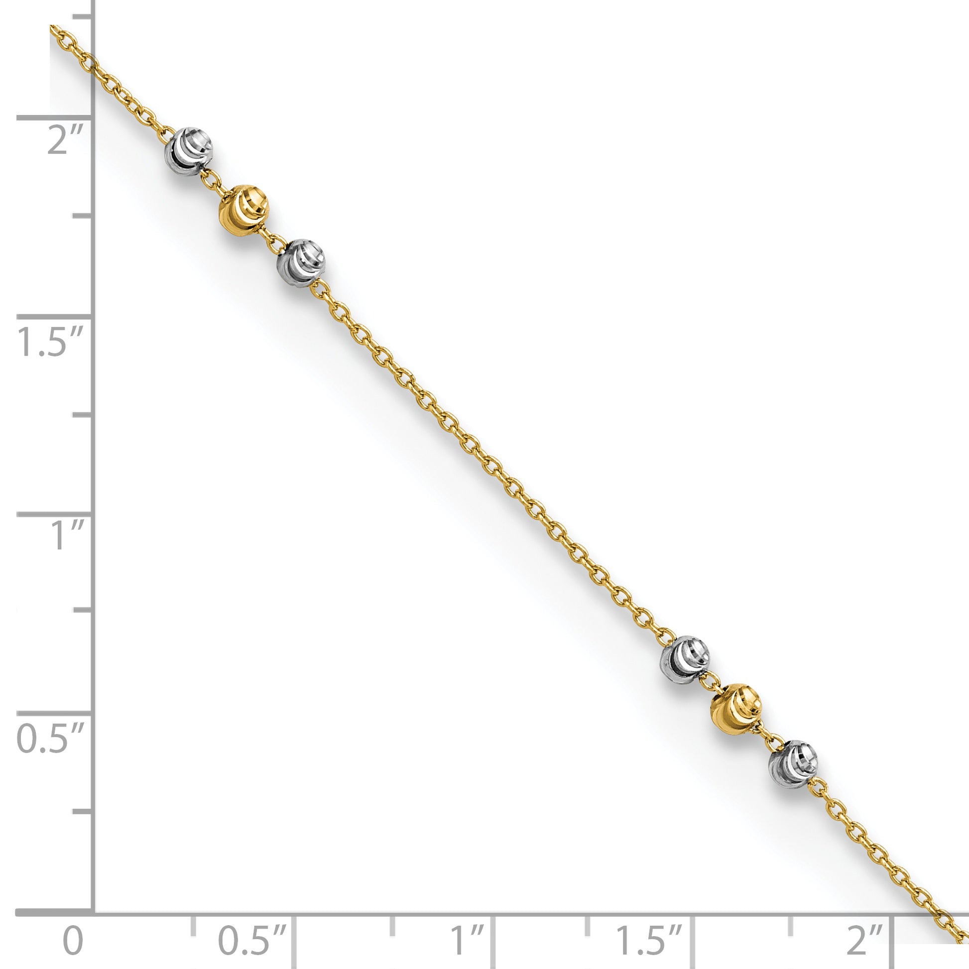 14K Two-Tone Polished Diamond-Cut Beaded 9In Plus 1 In Ext. Anklet