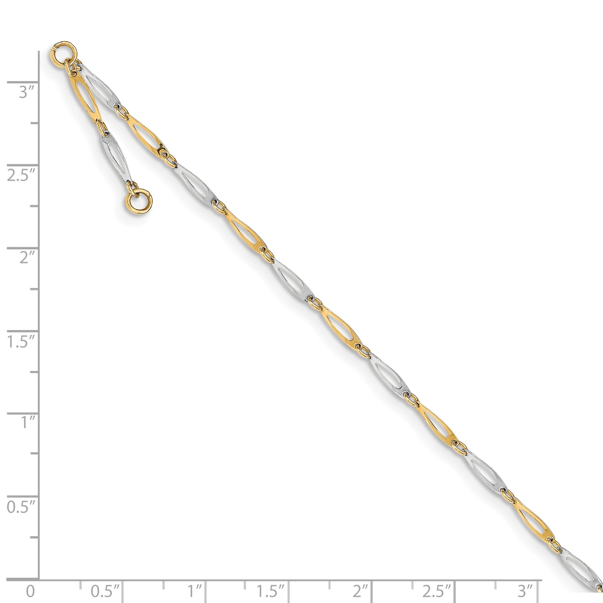 14K Two-Tone Polished Link 9In Plus 1In Ext. Anklet