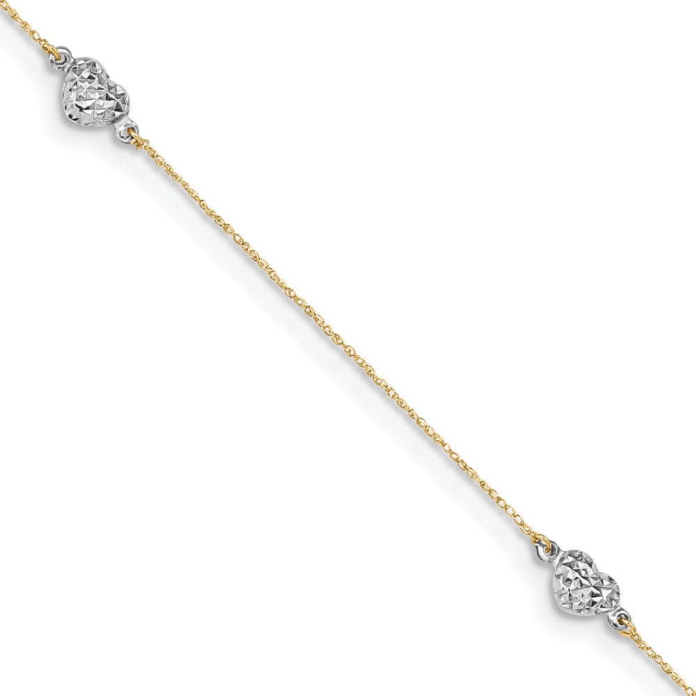 14K Two-Tone Puff Heart 9In Plus 1In Ext Anklet