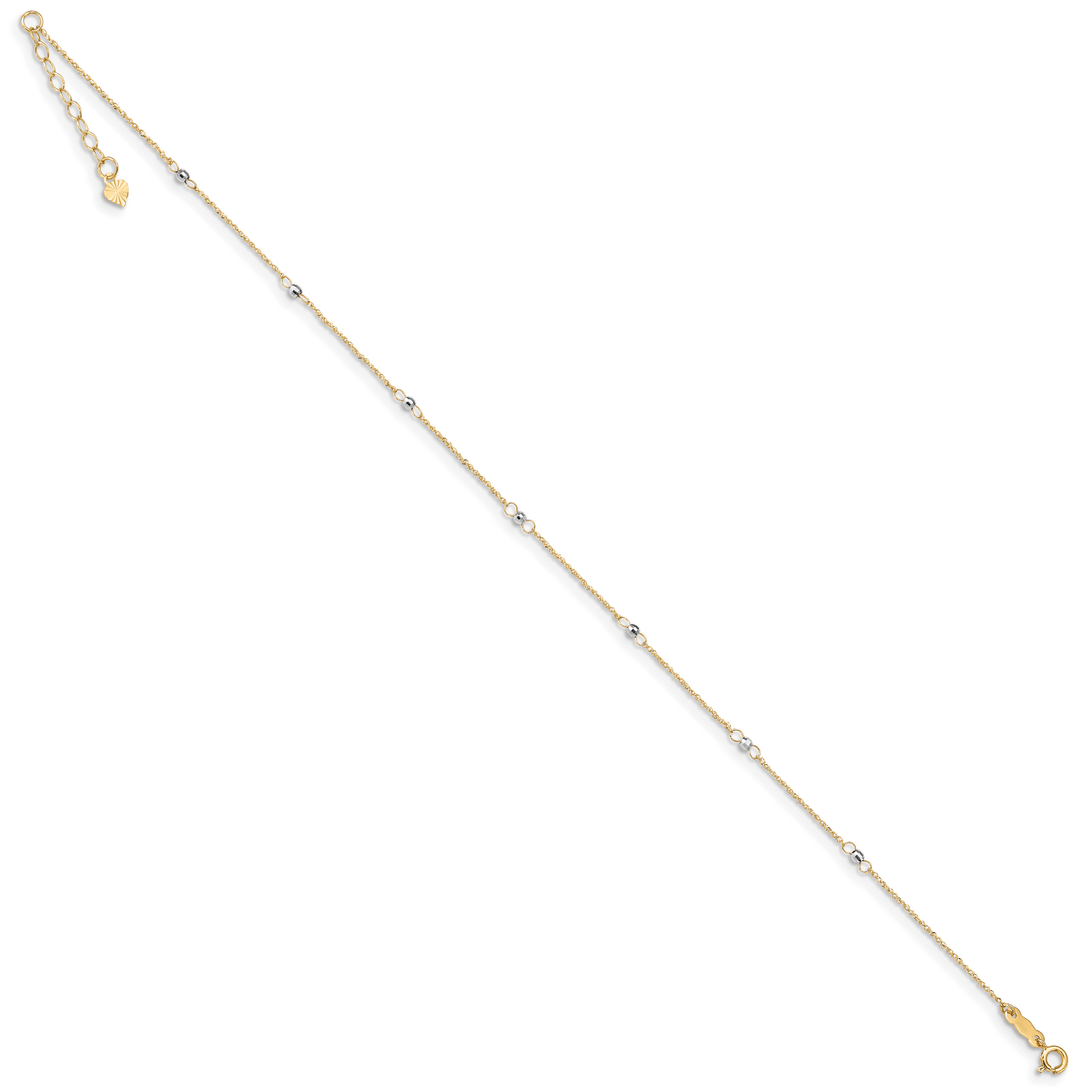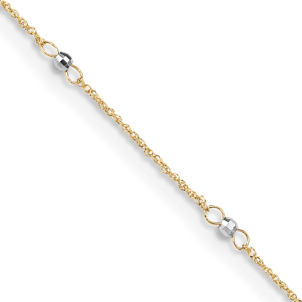14K Two-Tone Rope Mirror Bead 9In Plus 1In Ext. Anklet