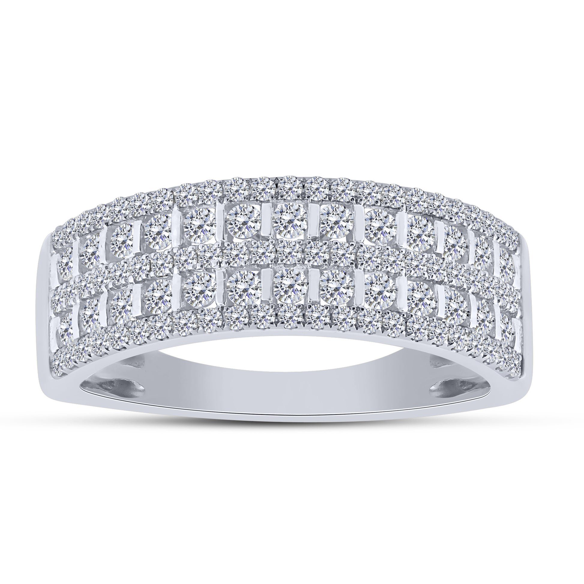 This striking anniversary or fashion ring, the 14K White Gold 0.75 CTW Diamond 2 ROW BAND, features a contemporary two-row design that delivers maximum sparkle. Crafted from premium 14K white gold, this band is set with dazzling, genuine diamonds totaling 0.75 carats, making it a brilliant statement piece for any collection.