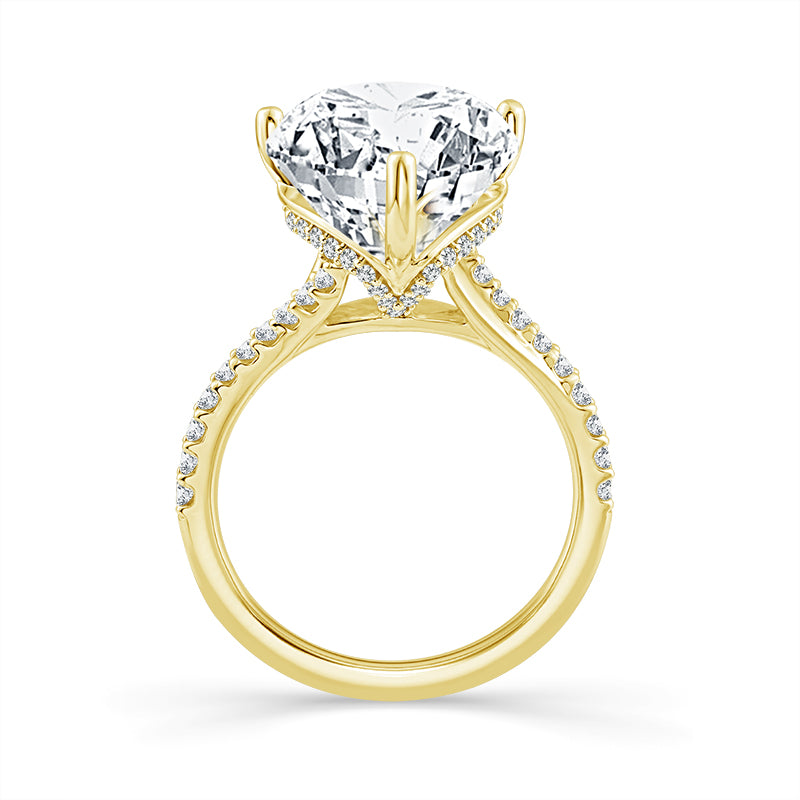 This radiant 14K yellow gold bridal set showcases a dazzling 4.03 carat lab-grown heart diamond centerpiece, framed by complementary stones for a total of 4.65 carats. The breathtaking 14K Yellow Gold 4.65 Ctw Lab-Grown Diamond Heart Bridal Set symbolizes a lifelong commitment with exceptional brilliance and romantic style.