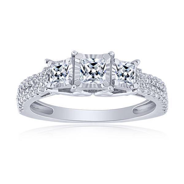 14K White Gold 1.00 ctw 3 Stone Diamond Ring