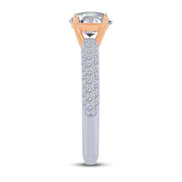 This exquisite two-tone 14K gold semi-mount ring features 0.50 carats total weight of sparkling natural diamonds accenting the band, ready to frame your perfect center stone. The stylish blend of white and pink gold creates a modern yet timeless foundation for your commitment, making the 14K Two Tone 0.50 CTW Diamond semi-mount ENGAGEMENT RING the ideal start to forever.
