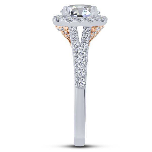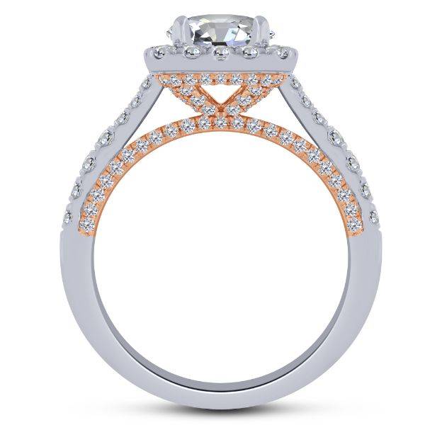 14K Two Tone Cushion Diamond Semi Mount Engagement Ring