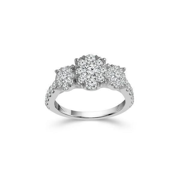 This traditional three-stone design is crafted from luxurious 14K white gold, featuring 0.75 carats total weight of natural white diamonds set in a timeless round cluster. The 14K White Gold 0.75 CTW 3 Stone Engagement Ring symbolizes enduring love and commitment with classic elegance and stunning natural brilliance.
