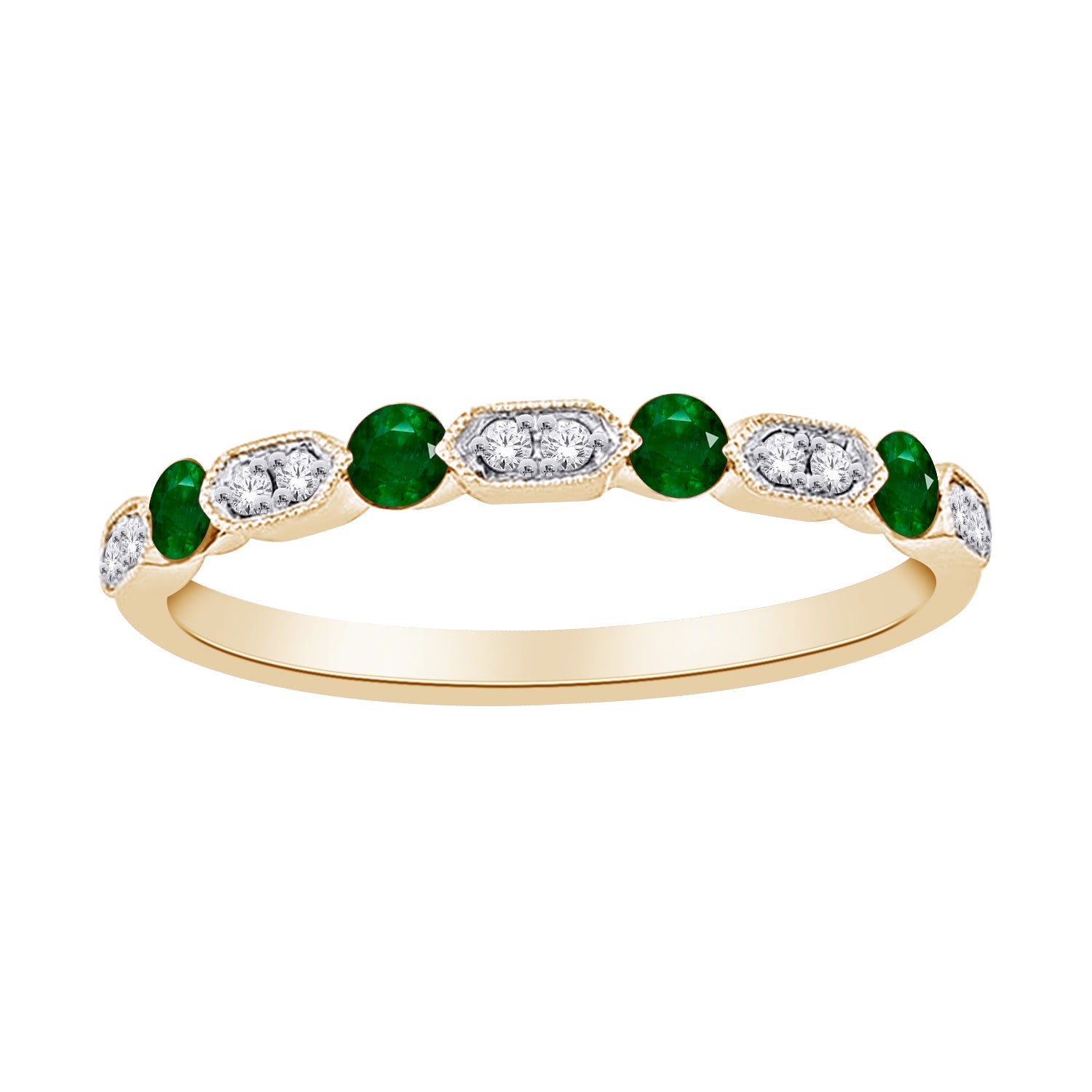 10K Yellow 0.10 ctw Diamond & 0.25 ctw Emerald Fashion Ring