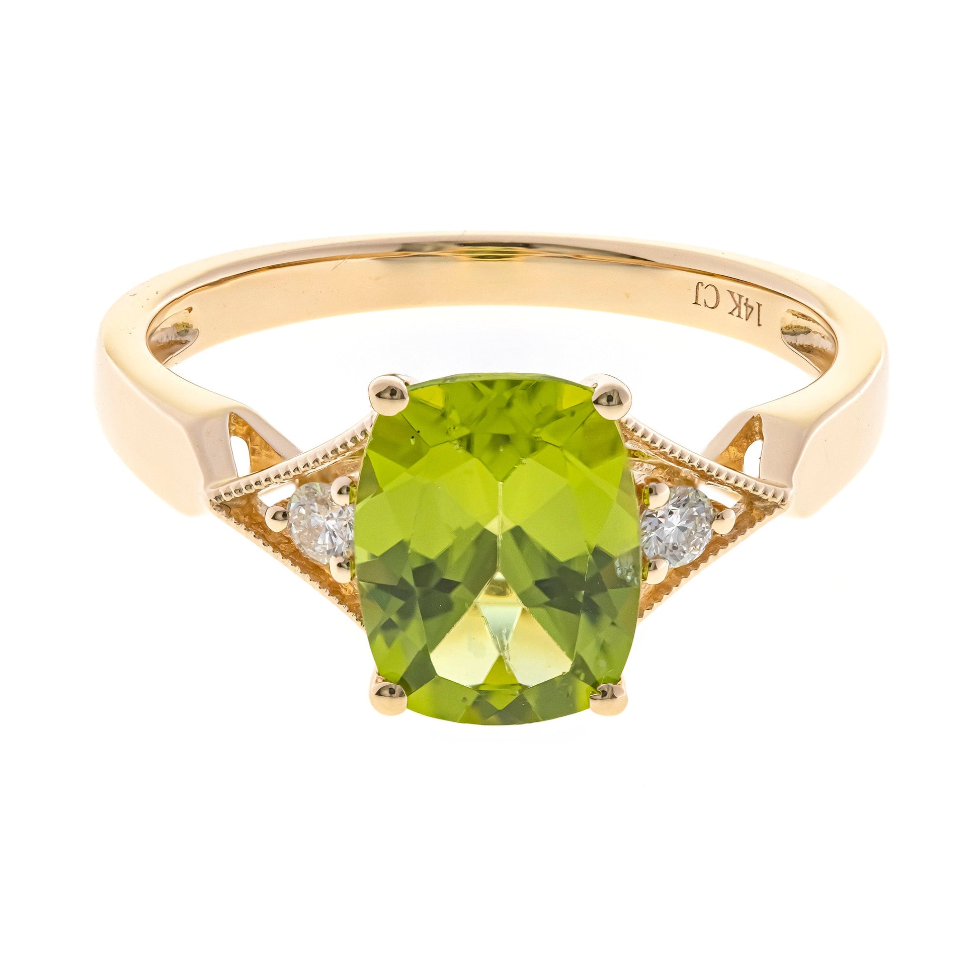 10K Yellow Gold 0.06 ctw Diamond 2.21 Center Natural Cushion Peridot Ring
