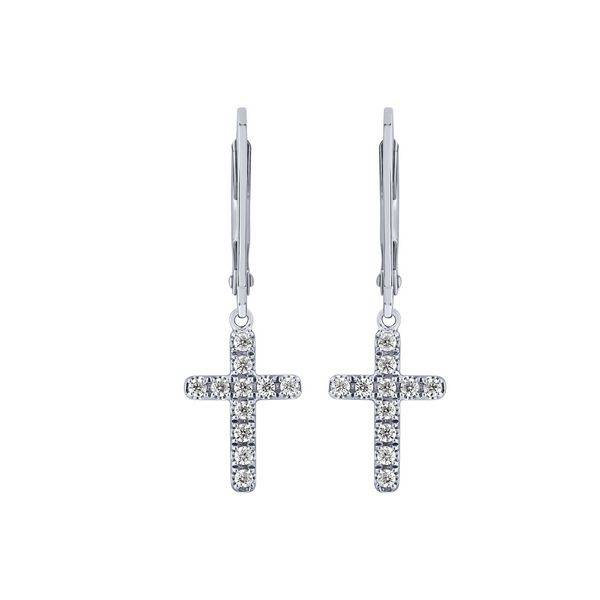 These petite cross earrings are fashioned in lustrous 10K white gold, featuring a delicate array of 0.26 carats total weight of sparkling natural diamonds. The elegant design of the 10k white gold 0.26 ctw Diamond Cross Earrings offers a graceful symbol of faith and sophistication perfect for daily wear.