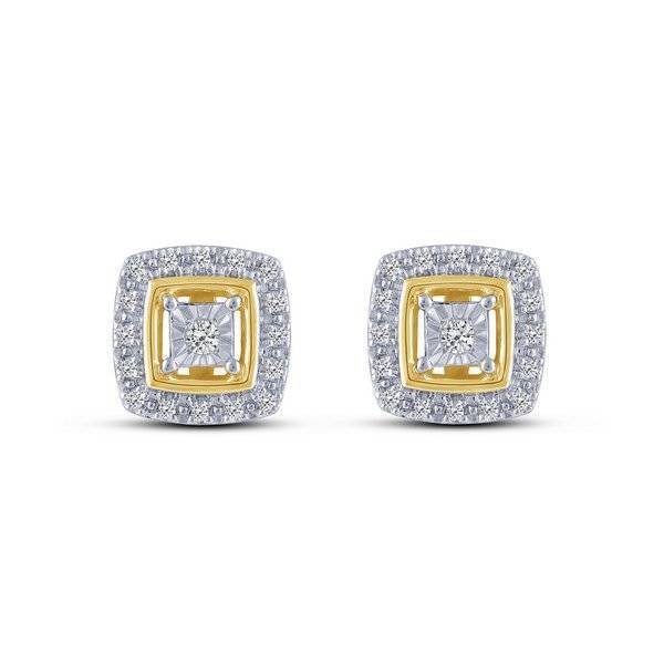 10K Two Tone 0.20 ctw Diamond Cushion Fashion Earrings