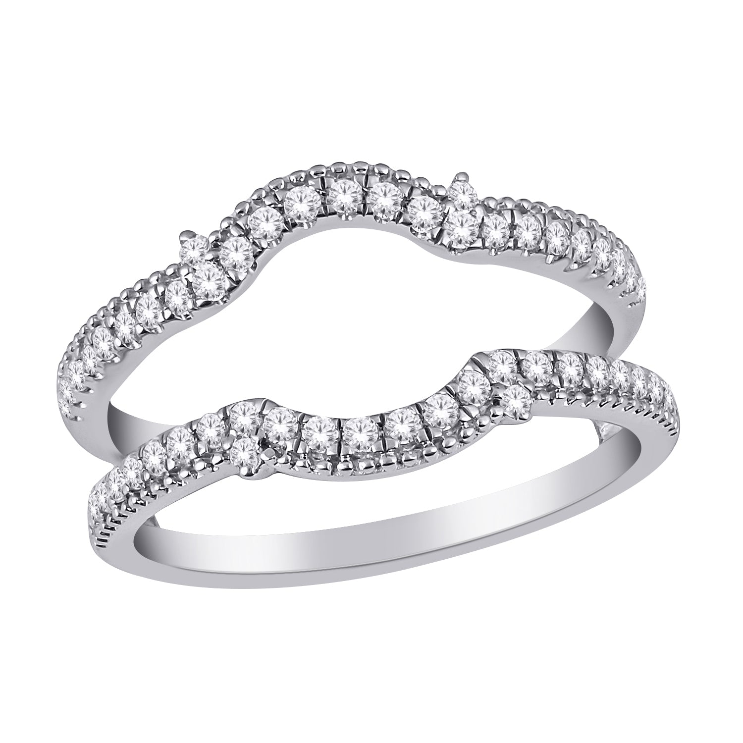 This exquisite ring enhancer is meticulously crafted in luminous 14K white gold, featuring 0.40 carats total weight of dazzling natural diamonds. Designed to frame your solitaire, the 14K white gold 0.40 CTw DIAMOND GUARD RING provides an extra layer of brilliance and security for a truly stunning bridal look.
