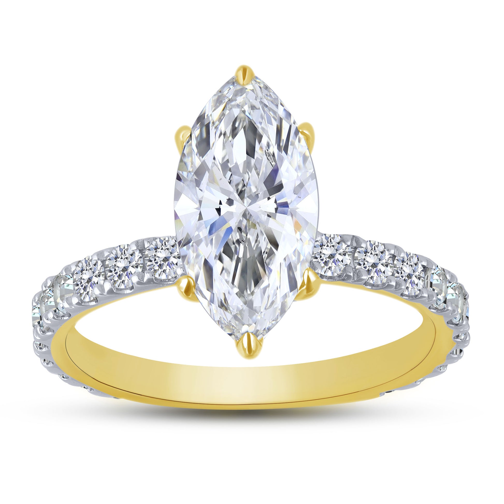 This striking marquise engagement ring is meticulously crafted in radiant 14K yellow gold, featuring a breathtaking total weight of 3.01 carats in certified lab-grown diamonds. The exquisite design of the 14K Yellow Gold 3.01 Ctw Lab-Grown Diamond Marquise Engagement Ring provides exceptional brilliance and is a perfect symbol of commitment and lasting love.