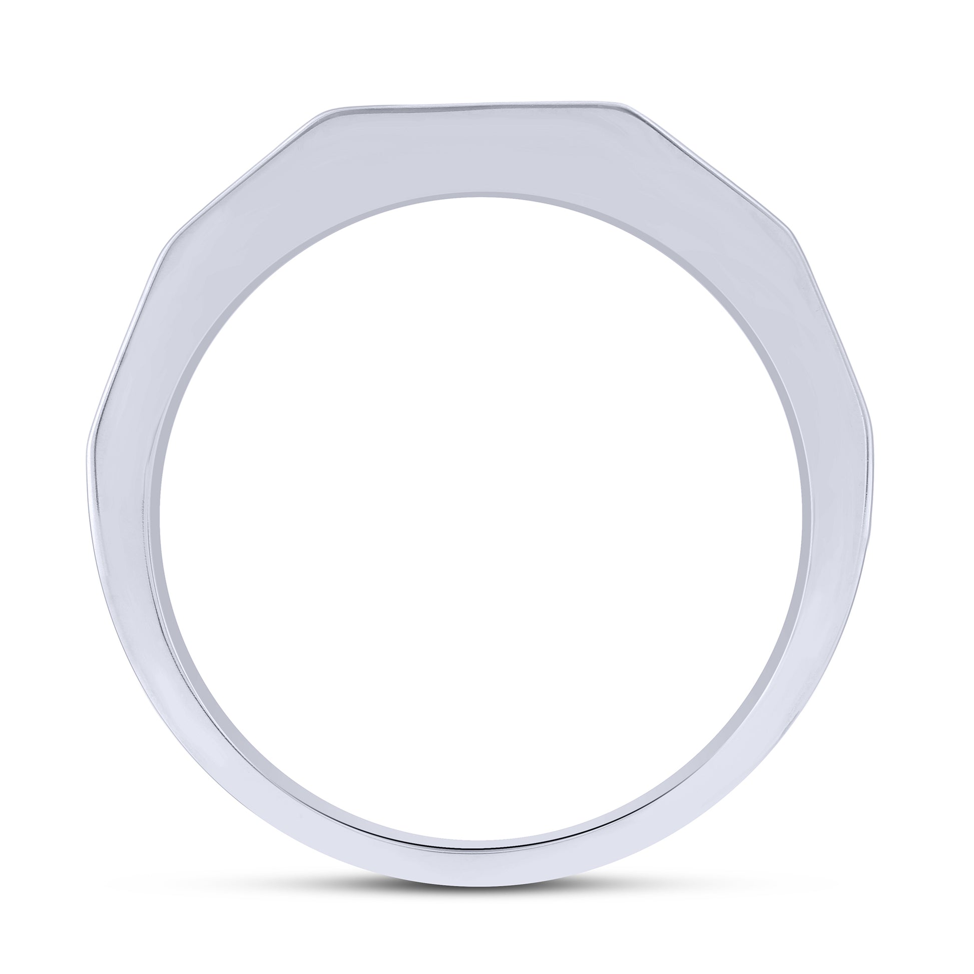 This sophisticated men's band, crafted from lustrous 10K white gold, features a refined design set with eleven sparkling diamonds totaling 0.13 carats. The continuous row of stones adds subtle brilliance to this timeless piece. The 10K White Gold 0.13 Ctw 11 Diamond Men's Band is perfect as a wedding band or a handsome daily accessory.