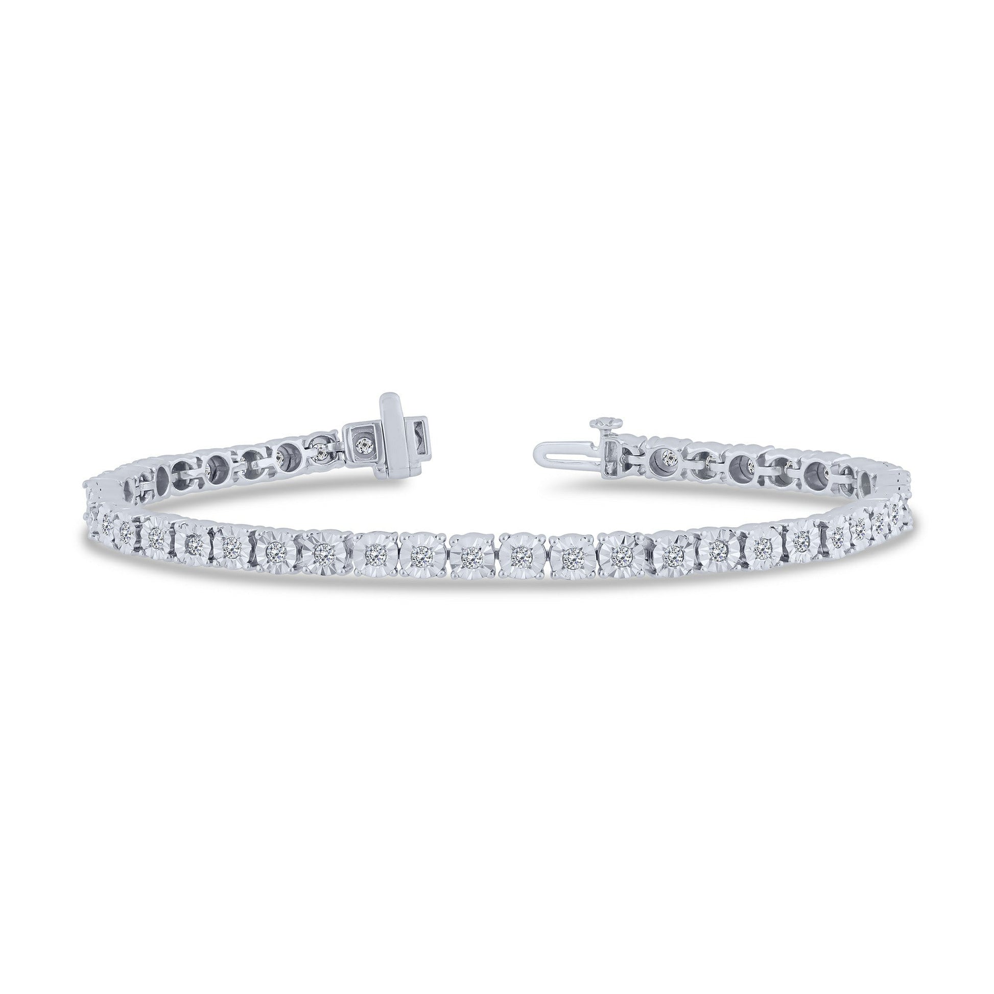 This classic sterling silver tennis bracelet features a continuous line of brilliant natural diamonds, making it a staple of timeless luxury. With 1.00 carats total weight, the Silver 925 1.00 Ctw Tennis Bracelet provides sophisticated sparkle for everyday wear or special occasions.