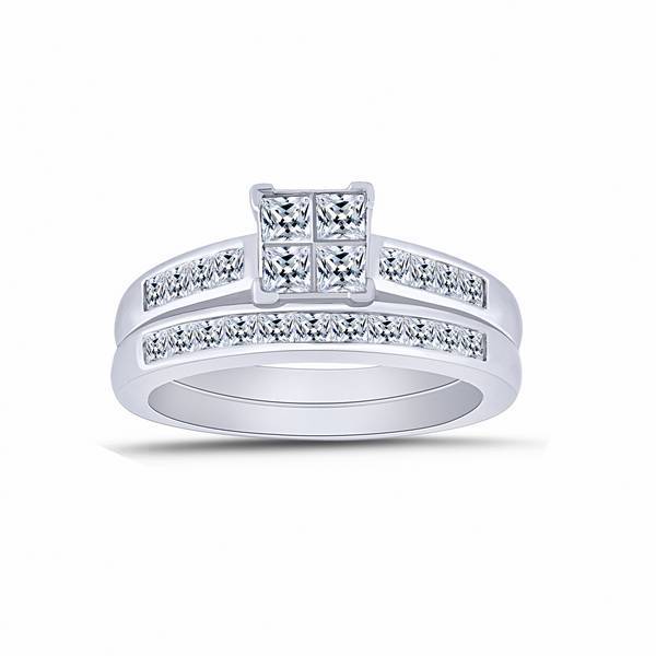 14K White Gold 1.00 ctw Diamond Quad Bridal Set