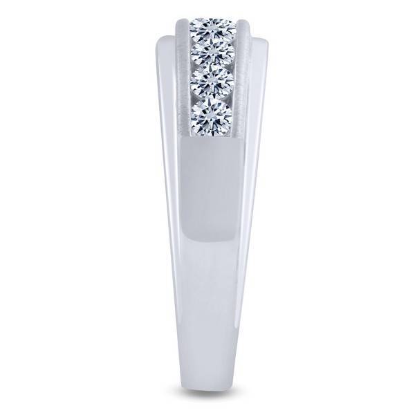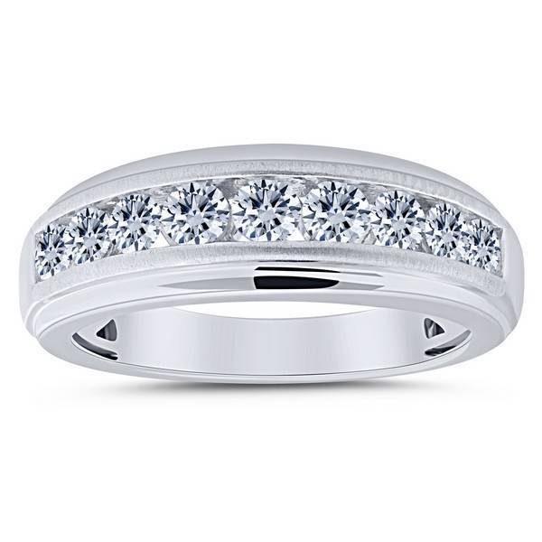 This handsome band is cast in 14K white gold and features 1.00 total carat weight of brilliant natural diamonds, making a sophisticated and lasting statement of commitment. The design prioritizes ultimate comfort with a rounded, comfort-fit inside edge, ensuring the 14k white gold 1.00 ctw Diamond Men's Band is perfect for daily wear.