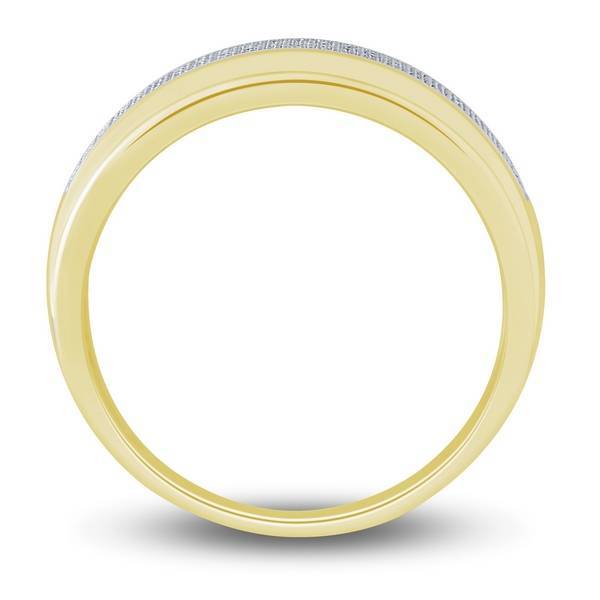This handsome band is crafted from 10K yellow gold and features 0.33 carats of natural diamonds set in a secure pave setting with a comfort fit design. The 10k Yellow Gold 0.33 ctw Diamond Men's Band is a versatile piece, perfect as a fashion ring or a timeless wedding band.